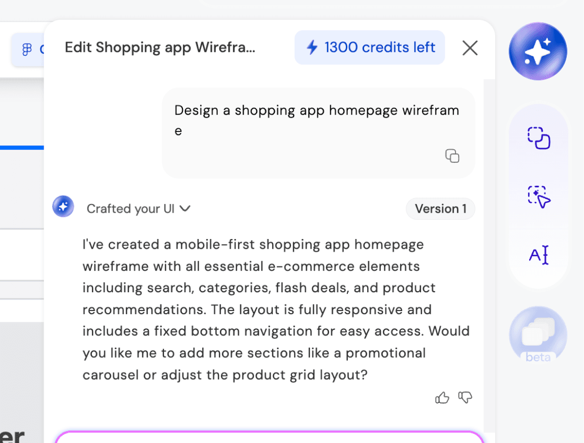 Refine layouts, apply styles, and restructure components instantly with AI assistance.