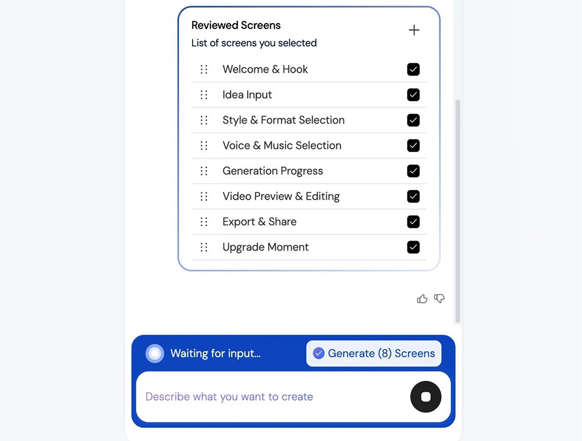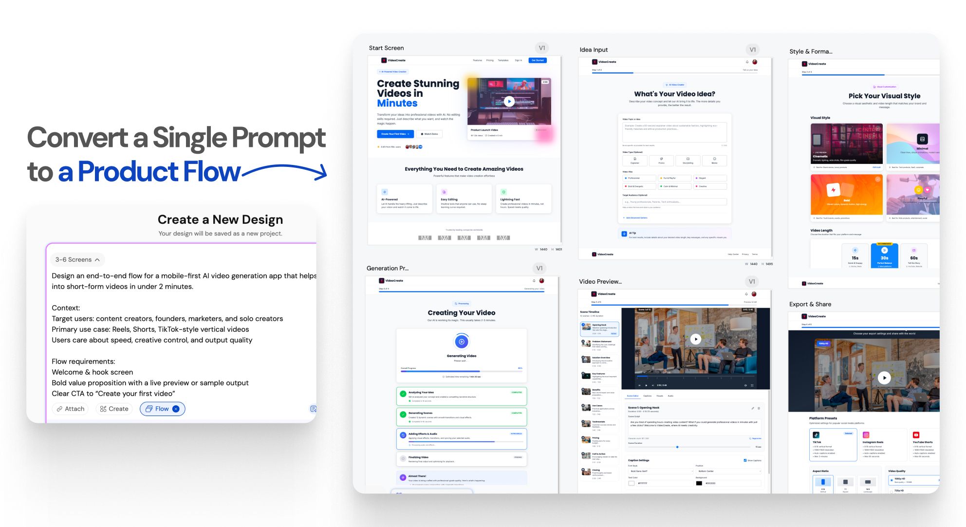 | Idea to Full App Flow in One Prompt |