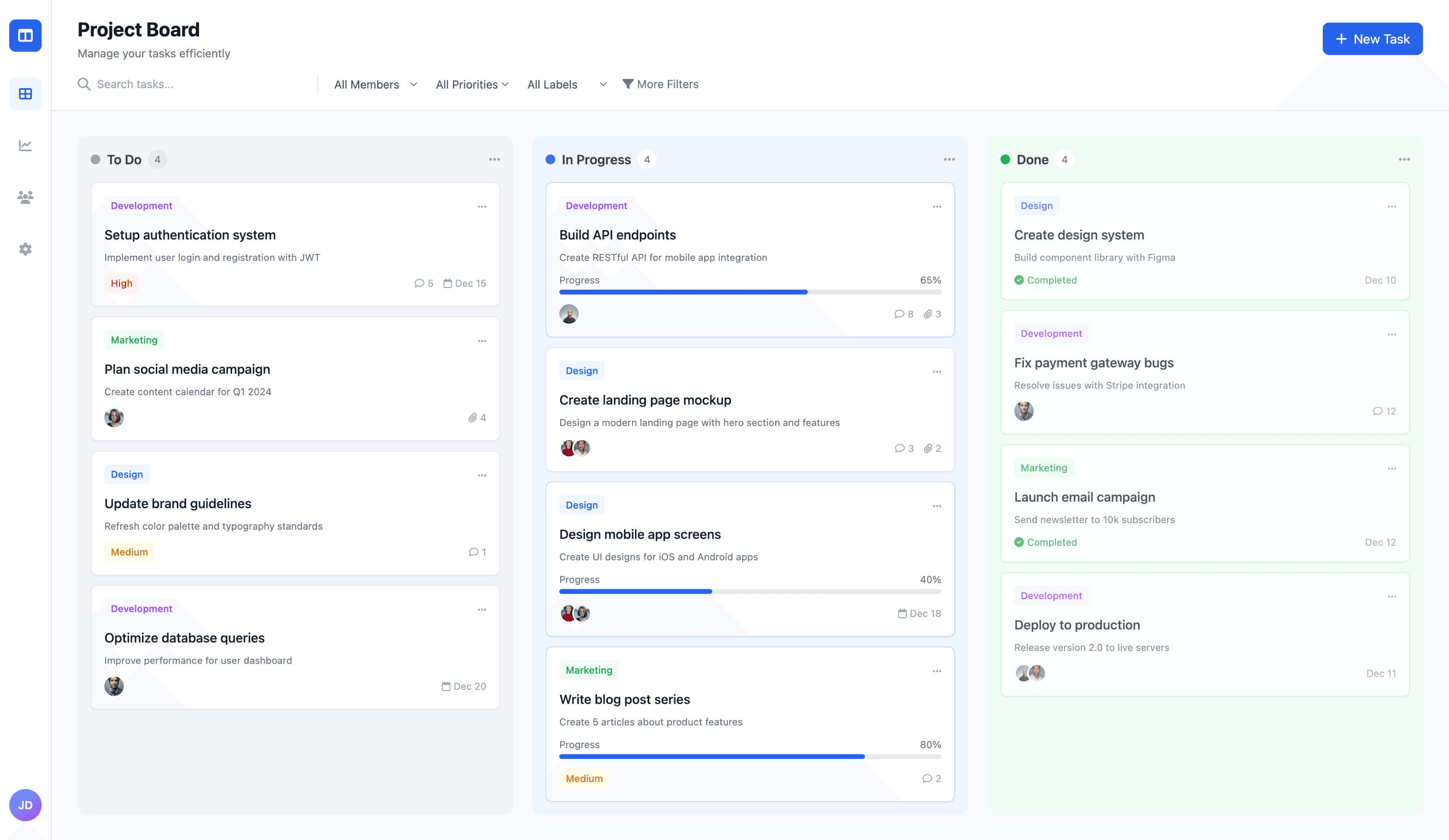 Column density could be optimized — Some cards have larger vertical spacing than needed, reducing visible task count on a single screen.