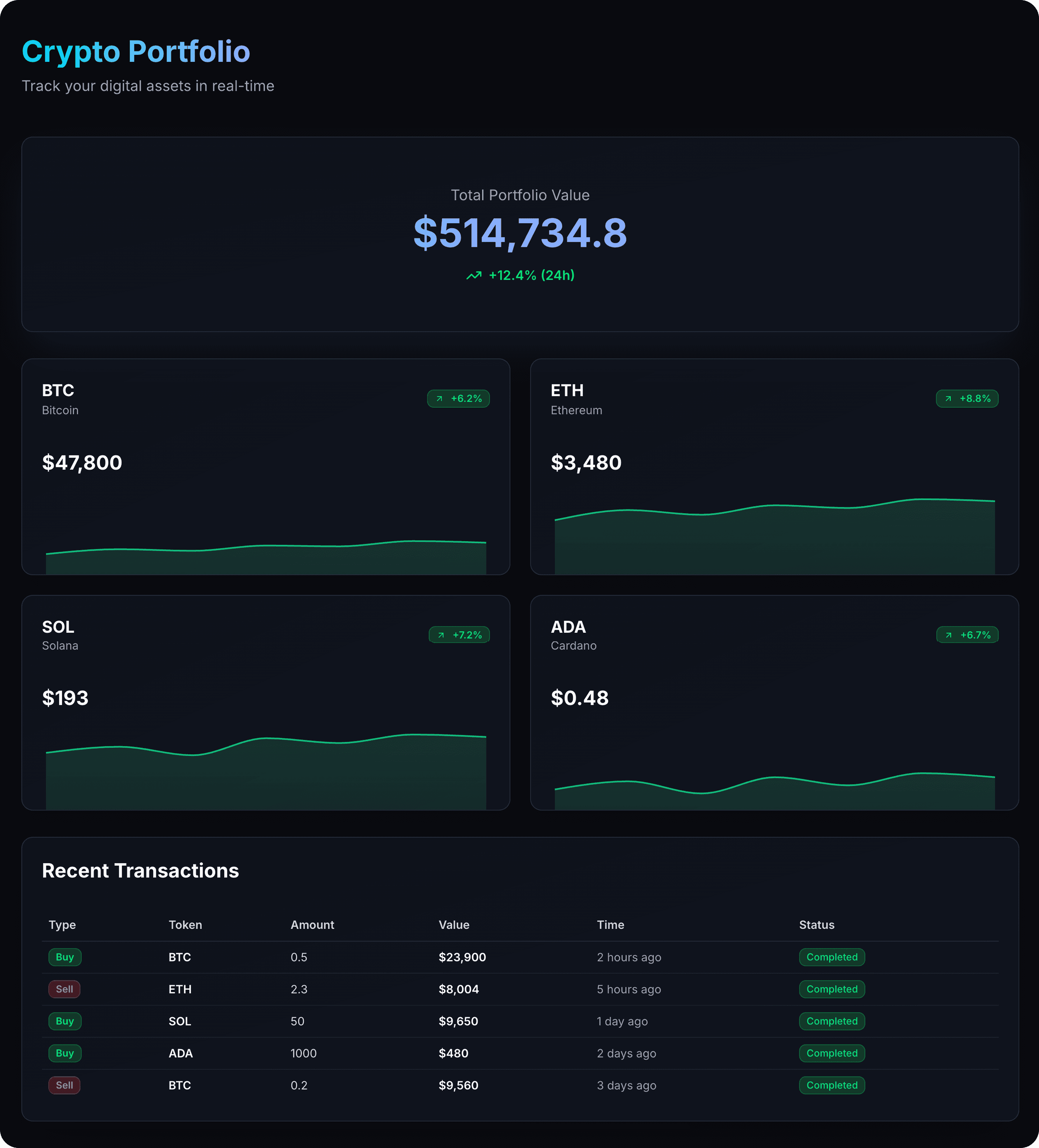 The "Recent Transactions" table is well-structured, clear, and highly scannable.