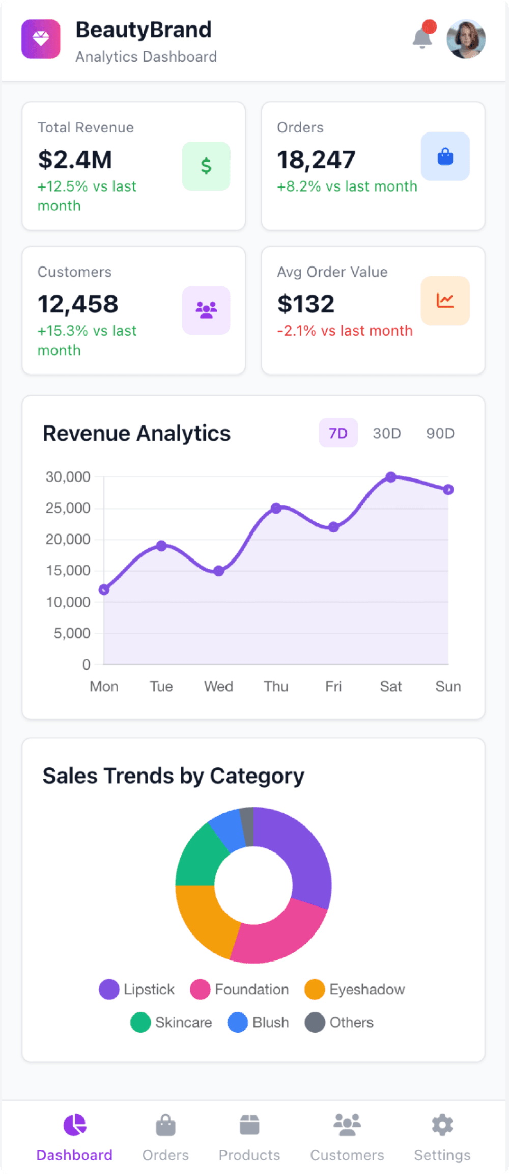 The top four KPI cards provide a clear, high-level business summary at a glance.