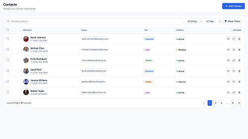 Clean visual hierarchy and row spacing make the table highly scannable for ops and CRM teams.